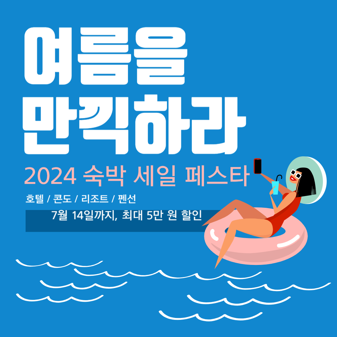 2024 숙박 세일 페스타를 아시나요? 제가 본 쿠폰 중 최고의 할인쿠폰인데요, 최대 5만 원까지 숙박비를 아낄 수 있어 지출 걱정이 되는 여름휴가에 안성맞춤이였습니다.