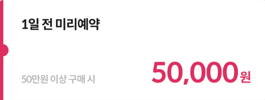 1. 할인쿠폰 : 60일 전 미리 예약 시 10% (최대 5만 원), 50만 원 이상 1일 미리 예약 시 6% (최대 5만 원)