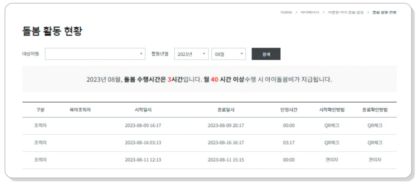 돌봄활동 내역