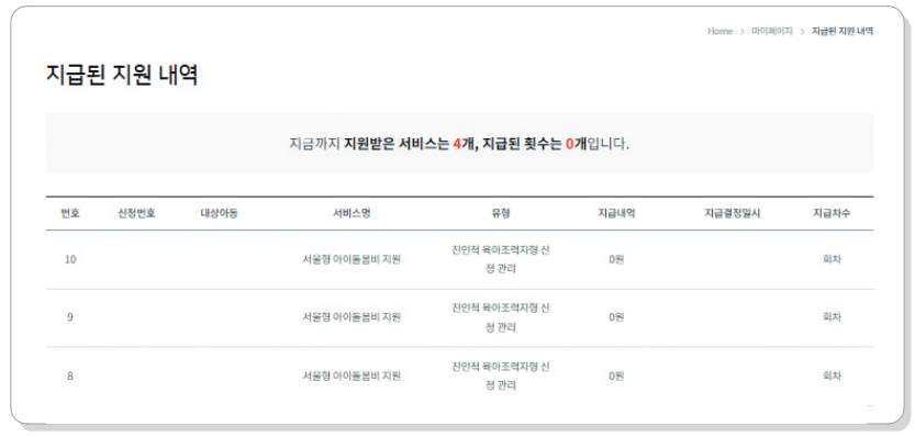 돌봄비 지급내역