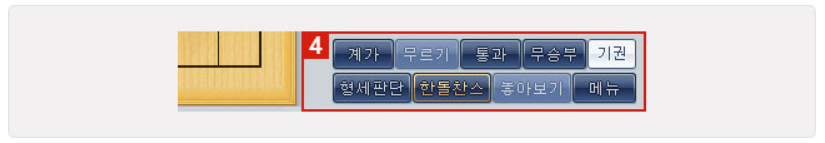 대국 진행에 도움이 되는 버튼으로 구성되어 있습니다.