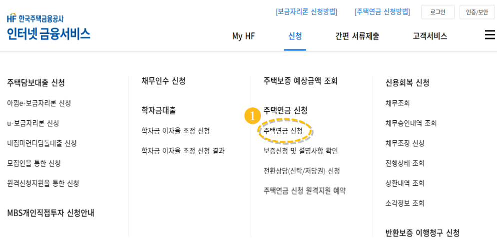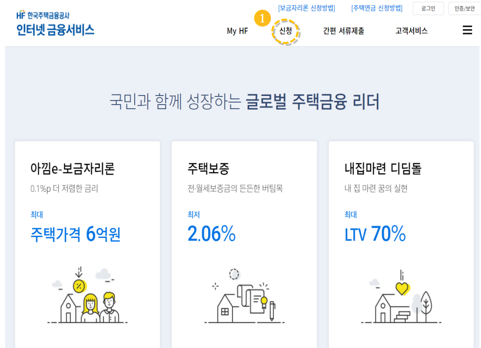 3. 로그인 후 주택연금 신청을 클릭하세요.
