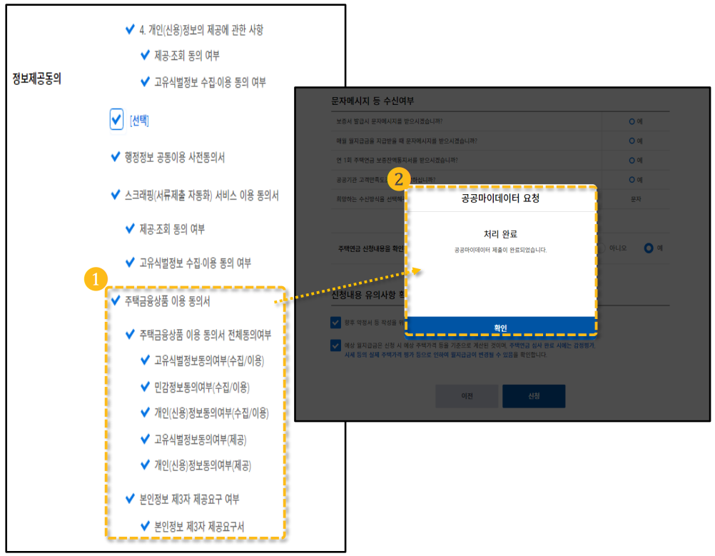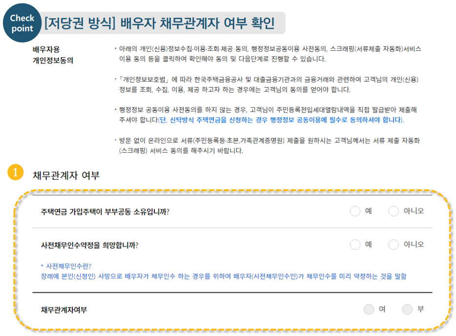 5. 정보제공동의에 관한 공공마이데이터 요청, 배우자 채무관계자, 인적사항등을 입력하세요.
