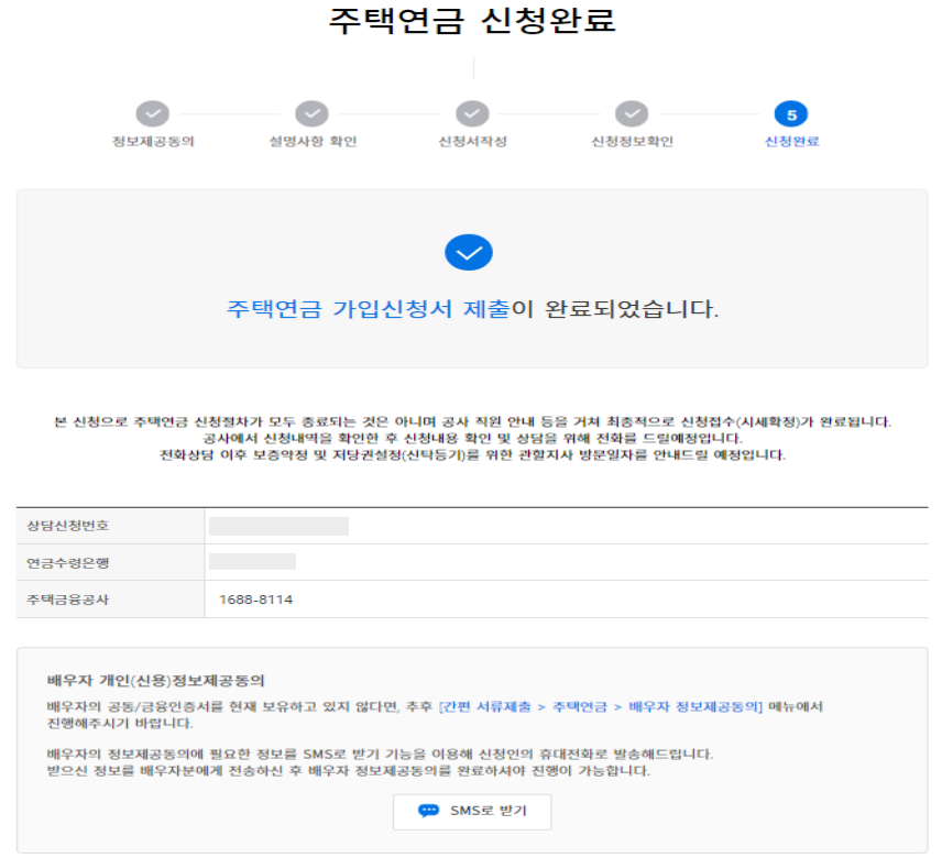 8. 신청서 작성 및 제출이 완료되면 신청결과 확인을 문자로 받아볼 수 있습니다.