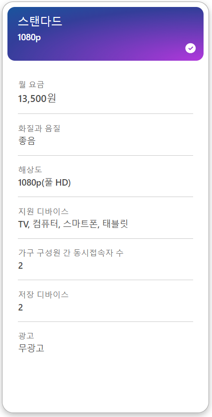 광고형 스탠다드, 스탠다드, 프리미엄. 각 요금제는 가격과 제공되는 서비스의 범위에서 차이가 있습니다.